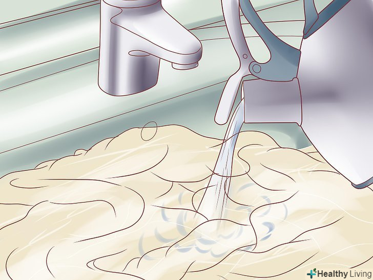 Вимийте руно в гарячій воді. ви повинні добре вимити шерсть до прочісування і прядіння. Це робиться для видалення масла з неї, яке може ускладнити обертання пряжі. Ви можете мити в холодній воді, але рекомендується використовувати гарячу воду. Вода повинна бути помірно гарячою, для того щоб промити шерсть.- Використовуйте велику ванну або басейн. Ви можете розділити шерсть на секції, щоб було легше мити її, і так, щоб шерсть не збивалася в купу.