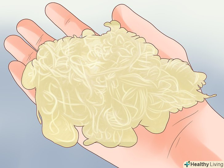 - Якщо у вас товсті і тонкі місця у вашій пряжі (відомі як згустки), ви можете залишити їх для певної в'язки (наприклад, для в'язання шарфів). В іншому випадку ви можете видалити згустки, затискаючи пряжу руками по обидві сторони від згустку і розкручувати, поки волокна не розійдуться трохи.