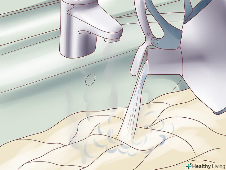 Промийте і повторіть. кожен раз, коли ви промиваєте шерсть, переконайтеся, що температура така ж, як була. Чим більше ви розкриваєте руно у воді, тим менше циклів прання / полоскання ви повинні пройти. Залежно від ступеня забруднення вам, можливо, доведеться зробити більше циклів полоскання.- Замочіть руно в гарячій воді і додайте півсклянки оцту на 30 хвилин для останнього полоскання.