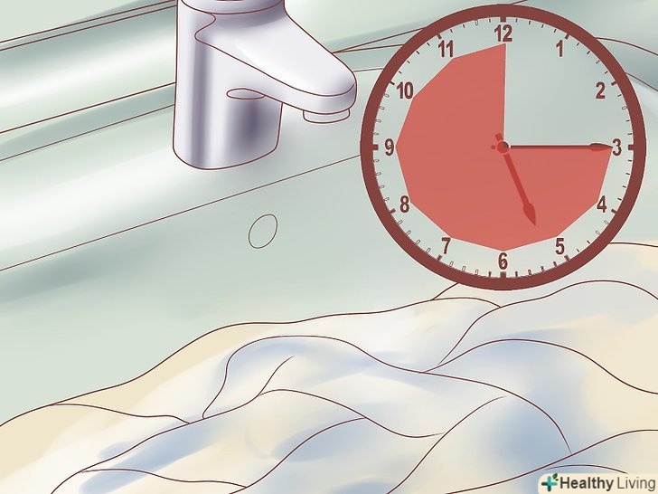 Замочіть руно протягом 45 хвилин. Шерсть повинна увібрати воду, щоб позбутися від бруду, масла та інших нечистот. Залишити шерсть вбиратися, це не означає Перетворити її в повсть. [7]- Не допускайте течії проточної води безпосередньо на шерсть.