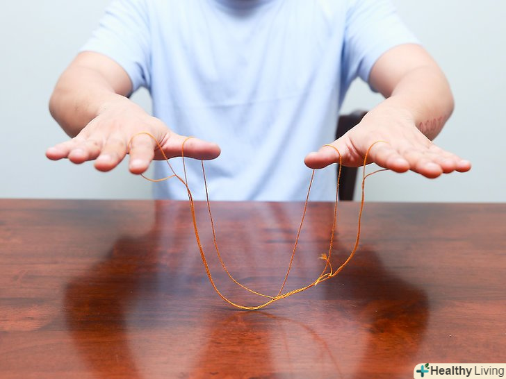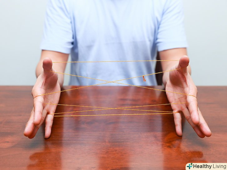 Вказівним пальцем кожної руки подденьте нитку з протилежного боку. кожним вказівним пальцем слід зачепити нитку посередині протилежної долоні.- Виконайте це обома вказівними пальцями, підчепивши ними нитку.
