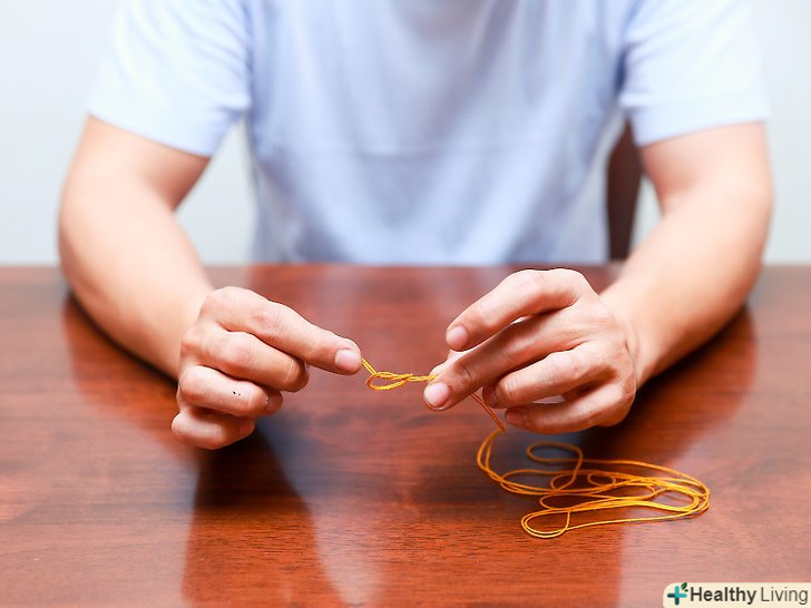 Зв'яжіть вільні кінці нитки в вузол. після цього відріжте короткі хвости, які виступають з отриманого вузла. [1] в результаті у вас вийде петля з нитки.
