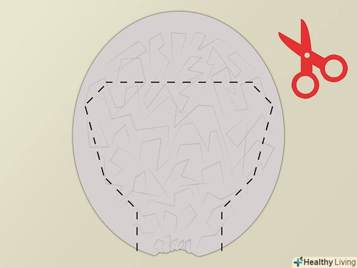 Надайте пап'є-маше форму шолома. спочатку ножицями зріжте дно, потім зробіть округлу проріз для особи.- Працюйте від нижнього отвору. Зріжте дно шолома так, щоб через отвір проходили голова і шия.