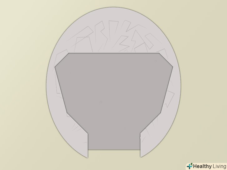 Намалюйте овал на великому пластиковому відрі шириною 18 сантиметрів і довжиною 13 сантиметрів. він повинен бути достатньо великим, щоб через нього було видно ваше обличчя. Візьміть олівець і намалюйте овал. [13]- Простежте, щоб отвір розташовувався на рівні вашого обличчя, коли ви надягнете відро на голову. Щоб правильно відзначити рівень отвору, візьміть перевернуте відро перед собою, так щоб його дно знаходилося врівень з вашої верхівкою. Побіжно відзначте на відрі розташування ваших брів і нижньої губи. За зробленими мітками проведіть овал.