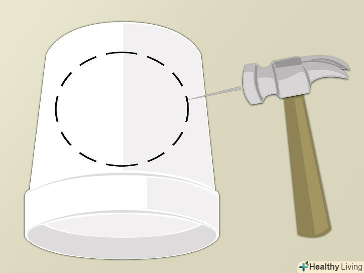 Зробіть перший отвір на контурі овалу. встановіть кінчик цвяха де-небудь на проведеній лінії. Стукніть молотком по цвяху, щоб пробити їм відро. [14]- Вийміть цвях з зробленого отвору.