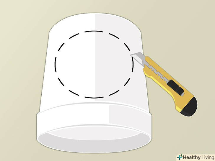 Візьміть ножиці по металу і виріжте овал по контуру. протягніть гострі ножиці по металу в пробитий отвір і обережно виріжте овал по контуру. [15]- Дістаньте і викиньте вирізаний пластиковий овал.