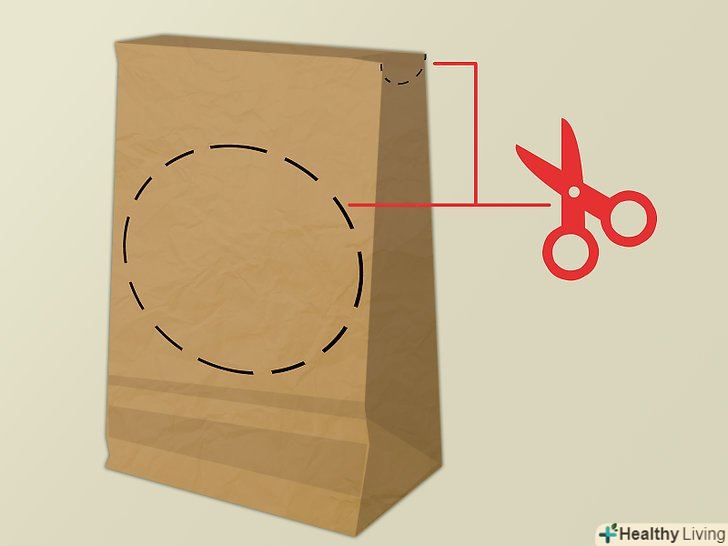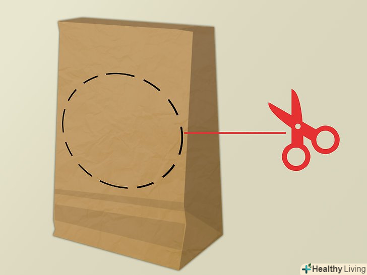 Намалюйте на паперовому пакеті велике коло. [1] коло має бути розміром з Ваше обличчя або трохи більше.- Коло повинен бути розташований на рівні вашого обличчя. Щоб правильно його розмістити, надіньте пакет на голову і попросіть кого-небудь намалювати коло в такому положенні.