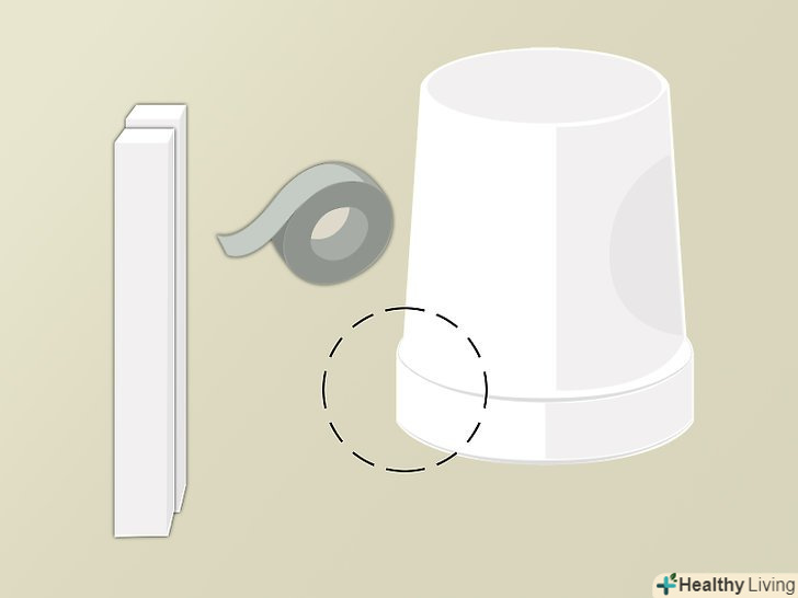 Прикріпіть кільце з рушника до внутрішньої сторони шолома. використовуйте для цього скотч. Центральна точка кільця повинна збігатися з центром відра. [19]