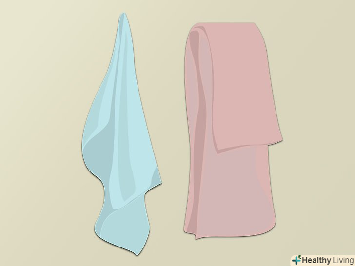 Обмотайте кухонний рушник навколо голови. візьміть звичайний кухонний рушник і обмотайте його кільцем навколо голови, так щоб воно перетинало лоб. Скріпіть його кінці скотчем. [18]- Кільце повинно бути достатньо вільним, щоб ви могли легко зняти і надіти його на голову.