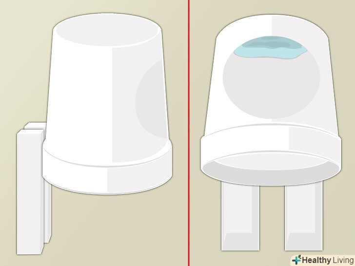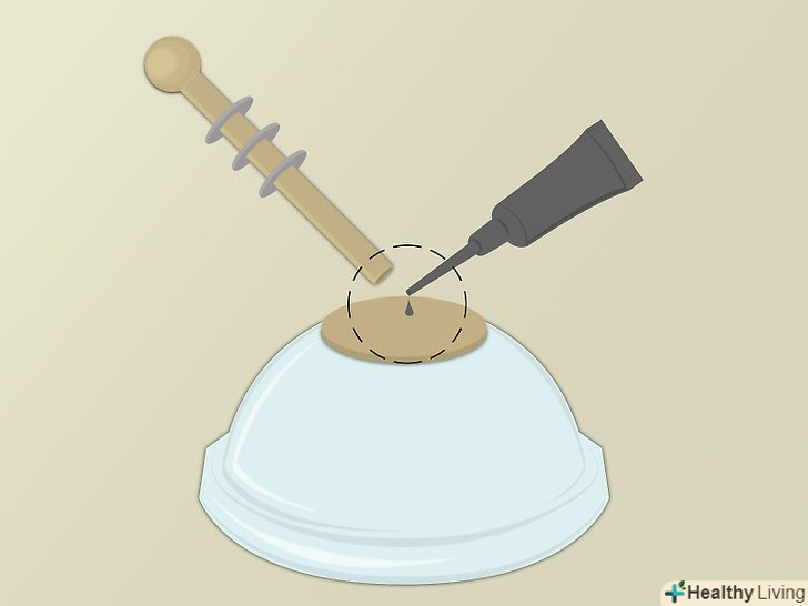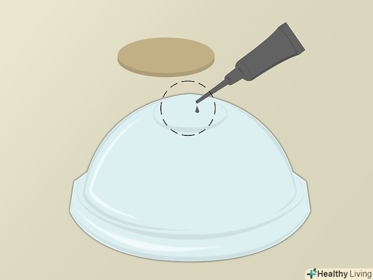 Спорудити підставу антени. Візьміть куполоподібну пластикову кришку від упаковки якогось продукту або напою. [20] знайдіть невеликий дерев'яний диск, щоб прикріпити його поверх кришки. Нанесіть на кришку кільце гарячого клею і втисніть в нього дерев'яний диск.