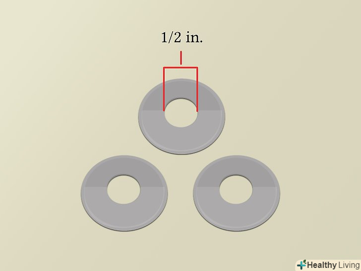 - Отвори в шайбах також повинні мати діаметр близько 1,3 сантиметра. Шайби повинні щільно насаджуватися на штирьок. При необхідності їх можна закріпити на потрібному місці за допомогою краплі гарячого клею з нижньої сторони кожної Шайби.