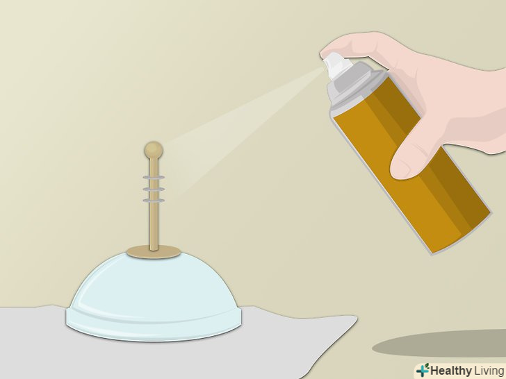 Напиліть на антену аерозольну фарбу. знайдіть золотисту або мідну металізовану аерозольну фарбу. [21] покрийте фарбою зовнішню поверхню як самої антени, так і її підстави.- Аерозольну фарбу слід розпорошувати в добре провітрюваному приміщенні. Також бажано підстелити плівку або газету, щоб не зіпсувати фарбою робочу поверхню.