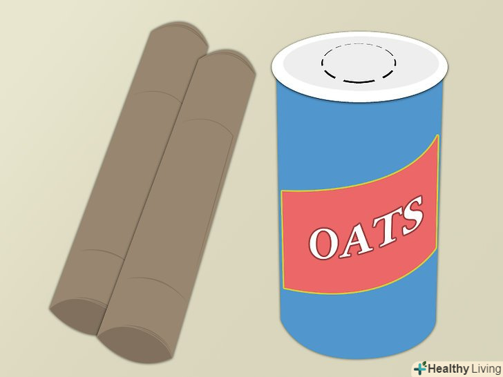 Прикладіть кінець картонної трубочки від паперових рушників до кришки циліндричної коробки і обведіть його. [2] Візьміть циліндричну коробку (наприклад, з-під вівсяних пластівців), помістіть в центр її кришки кінець трубочки від паперових рушників і обведіть його маркером.- Виконайте те ж саме з другою коробкою.