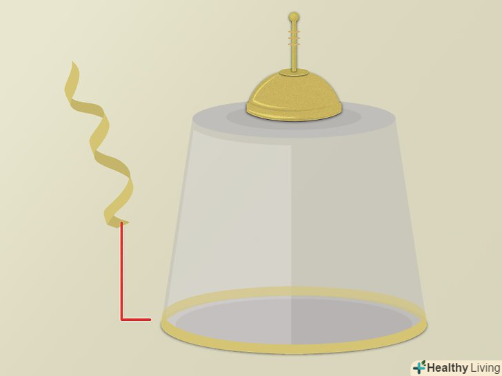 Закріпіть по периметру дна золотисту стрічку. відріжте шматок золотистої стрічки, достатньої довгий, щоб обернути його навколо дна ємності. Щоб приклеїти стрічку до дна, нанесіть на нього тонку смужку гарячого клею.- Розташуйте стрічку приблизно в 2 сантиметрах (або менше) від нижнього краю ємності.