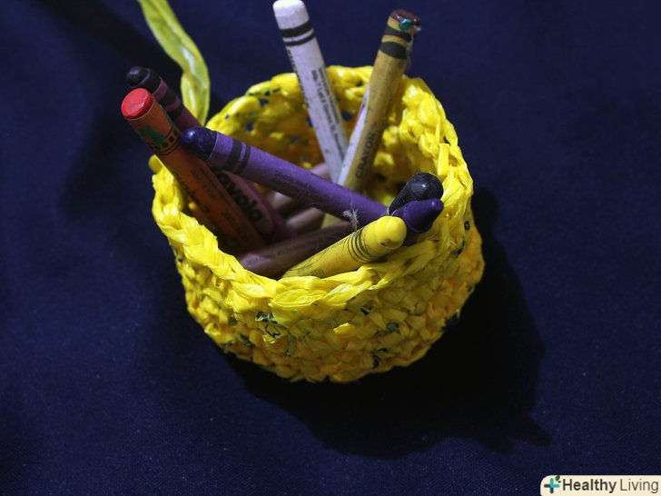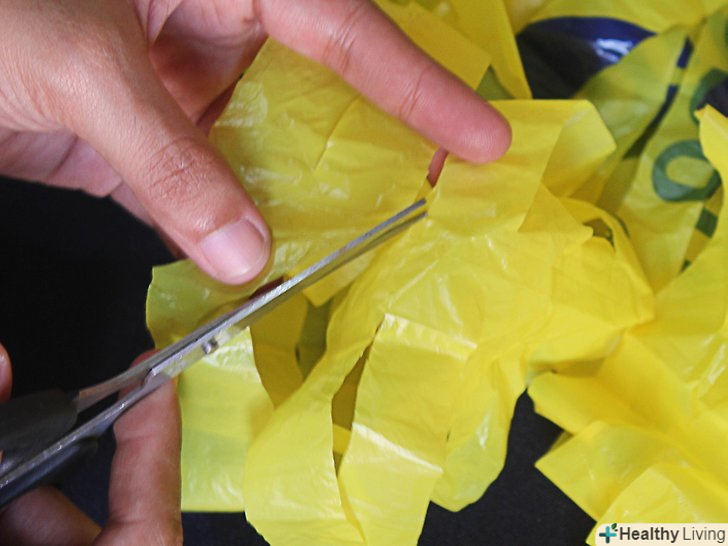 Змотайте поліетиленову стрічку в клубок. Тепер ви зможете зв'язати з неї що-небудь, наприклад, міцну сумку для покупок, яку ви зможете використовувати багаторазово.