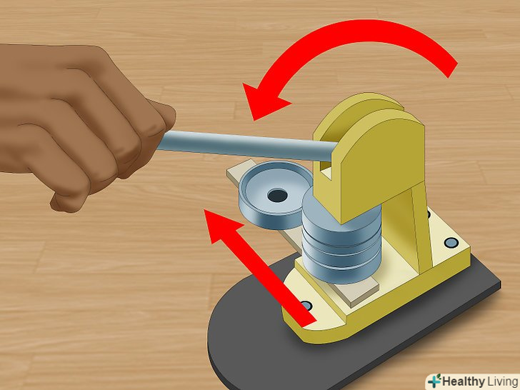 Затисніть пресом задню частину значка. поверніть ручки в зворотну сторону, щоб задня частина опинилася під пресом. Притиснувши.