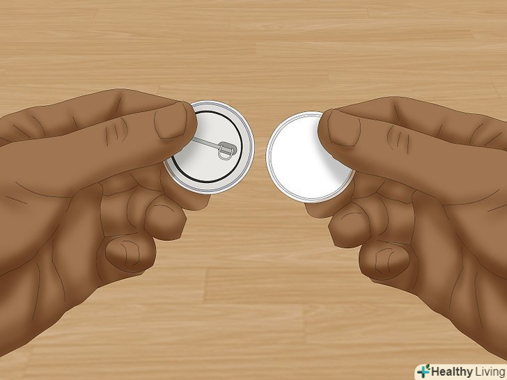 Купуйте заготовки для значків. вони також повинні бути відповідного розміру. В наявності повинен бути металевий або пластмасовий диск, відповідний задній штифт і лицьова частина з лавсанового пластика.