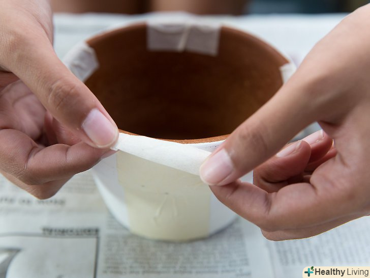 Наріжте малярську стрічку на смужки і приклейте їх вертикально і через однакові проміжки на стінки горщика.