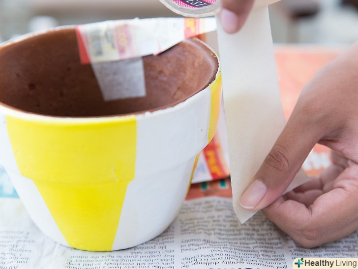 Нанесіть більш світлий колір на відкриті частини горщика, трохи заходячи на смужки. Дайте фарбі висохнути і, якщо необхідно, нанесіть зверху другий шар. Дайте фарбі висохнути ще раз і зніміть смужки.