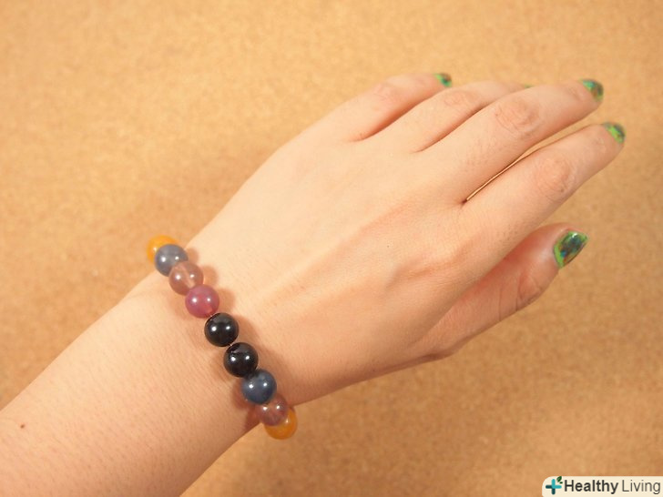 Закінчуємо браслет. Зав'яжіть кінці браслета на вузол. Якщо ви використовуйте затиск, то прикріпіть другу частину на кінець браслета. Якщо немає, то зав'яжіть на вузол два кінці навколо зап'ястя.