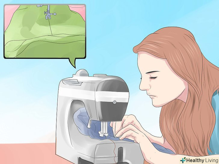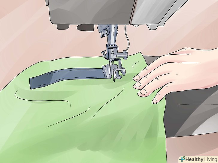 Відріжте шматок стрічки липучки, рівної по ширині великим шматкам тканини. пришийте одну сторону стрічки вздовж однієї сторони великого шматка тканини, а іншу сторону вздовж однієї сторони іншого великого шматка тканини.