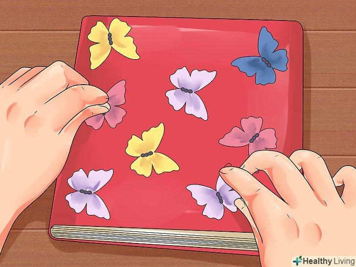 Продумайте дизайн обкладинки. як повинен виглядати ваш щоденник? Відповідь на це питання багато в чому залежить від тих матеріалів, які є у вас під рукою. Нижче наведено список можливих ідей.- Можна взяти обрізки фетру і скласти з них цікаву аплікацію, скориставшись клеєм або швейною машиною.