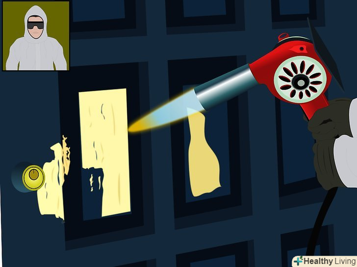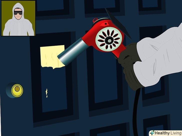 Якщо почнеться пожежа, залишайтеся спокійними. навіть якщо існує ймовірність того, що дерево загориться, такі пожежі зазвичай невеликі спочатку і зніми можна безпечно розібратися, якщо думати розумно.- Невеликий вогник можна погасити прихлопнув його плоскою стороною скребка для фарби.