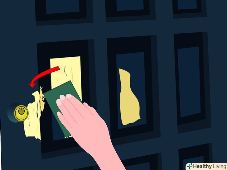 Зніміть фарбу, коли вона зморщиться. як тільки фарба почне пузиритися і зморщуватися, негайно зішкребіть її широким скребком для фарби.- По можливості, продовжуйте нагрівати фарбу феном однією рукою і соскребать пузирящуюся фарбу іншою рукою. Якщо у вас складності з виконанням двох завдань відразу, тимчасово відключайте фен і негайно соскребайте нагріту ділянку фарби.