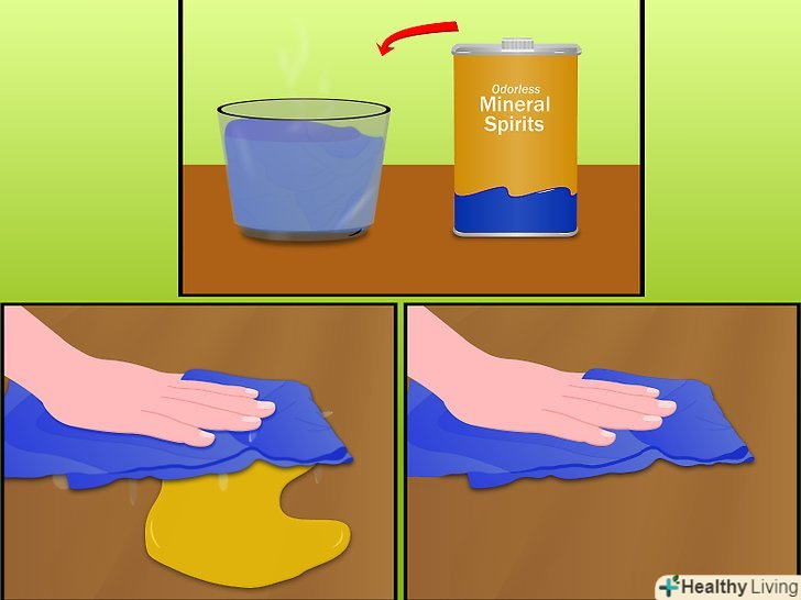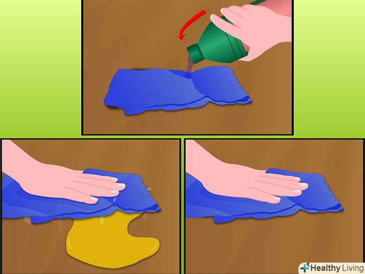 - Потріть пляму ганчіркою, змоченою в спирті. Сполосніть, заново намочіть спиртом і повторіть при необхідності.