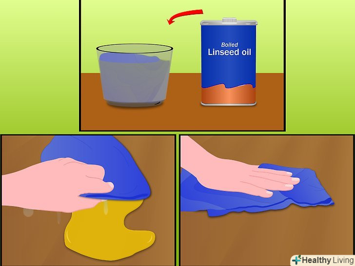 Видалення висохлої фарби киплячим лляним маслом. сухі плями фарби можуть бути розм'якшені замочуванням і стиранням їх киплячим лляним маслом.- Намочіть чисту ганчірочку киплячим лляним маслом.