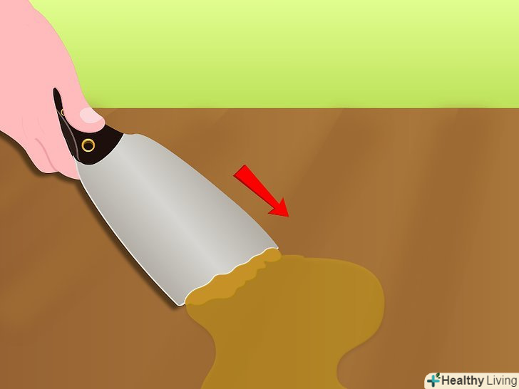 Використовуйте шпатель, якщо необхідно, для видалення стійких засохлих плям. якщо не вдається стерти фарбу навіть після розм'якшення киплячим лляним маслом, обережно скористайтеся шпателем, щоб підчепити пляму і віддерти його від дерев'яної поверхні.