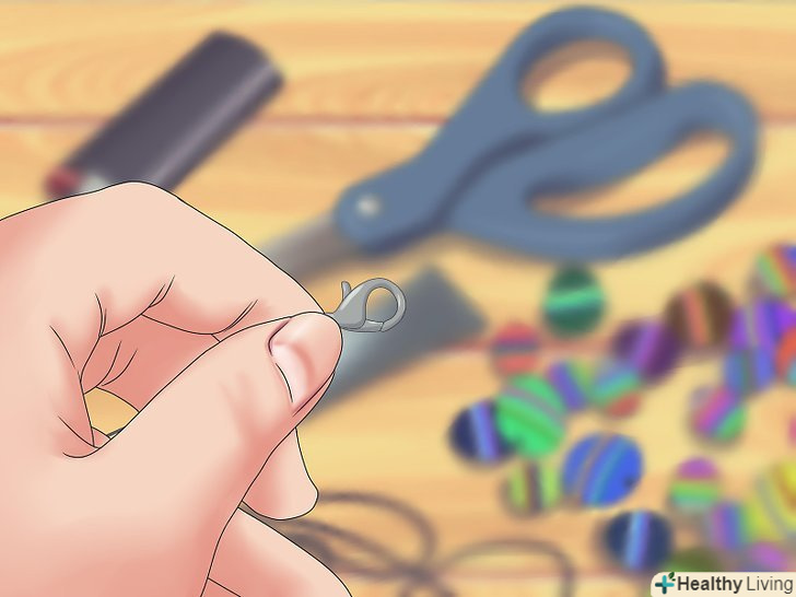 Як варіант, спробуйте зав'язати вузлик. якщо вище описаний спосіб закріплення звучить для вас страшно, ви можете просто зав'язати вузол на кінці троса якомога ближче до каллота. Потім закріпіть його клеєм. Відріжте зайву частину троса, щоб вузлик міг сховатися в каллоті.- Потім ви можете надіти застібку на гачок каллота. Закрийте гачок плоскогубцями, щоб застібка не зіскочила.