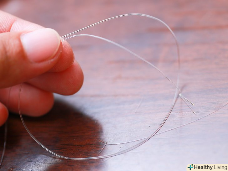 Відміряйте і відріжте волосінь. залежно від того, наскільки широке у вас зап'ясті і якої ширини ви хочете манжету, розміри волосіні можуть бути абсолютно різними. Оберніть волосінь навколо зап'ястя, щоб отримати основний розмір, потім збільште цю довжину в 5-6 разів. Ображати волосінь потрібної довжини; якщо ви відміряли трохи більше волосіні, ніж треба, ви в будь-який момент можете вкоротити манжету.