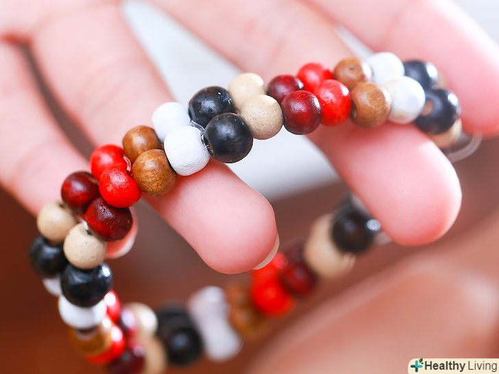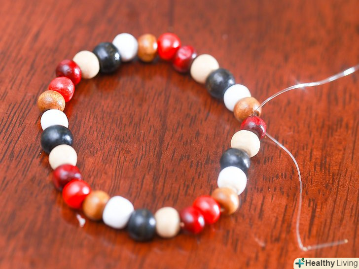 Закінчуємо браслет. коли ви закінчили дві частини браслета, ви готові їх зав'язати! Зав'яжіть вузол на кінці кілька разів так, щоб намистинки не могли зісковзнути. Потім приберіть зайву волосінь на цьому кінці і на іншому (десь в центрі)після цього, ви закінчили! [2]