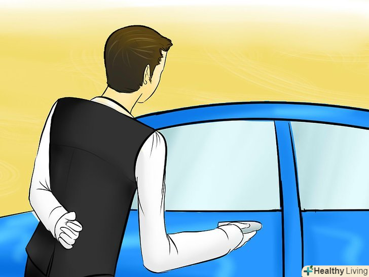 Виходьте з транспортного засобу.це повинно бути обов'язком камердинера-відкрити першими двері для пасажирок. Тим не менш, іноді час і обставини не дозволяють це зробити. Зробіть рішення самостійно про те, чи може камердинер виконати цю послугу. Якщо великий трафік і тільки одна або дві парковки, це не може бути зроблено. Коли ви вийдете з автомобіля, уважно слухайте інструкції від камердинера про ціни, часу закриття, і, як повернути ваш транспортний засіб. Ці деталі дуже важливі. Деякі послуги паркування можуть припинитися раніше, ніж в ресторані і залишити свій автомобіль де зручно для вас, щоб забрати. Якщо ви не слухаєте, вам, можливо, доведеться залишити свій автомобіль на ніч і внести додаткову плату.