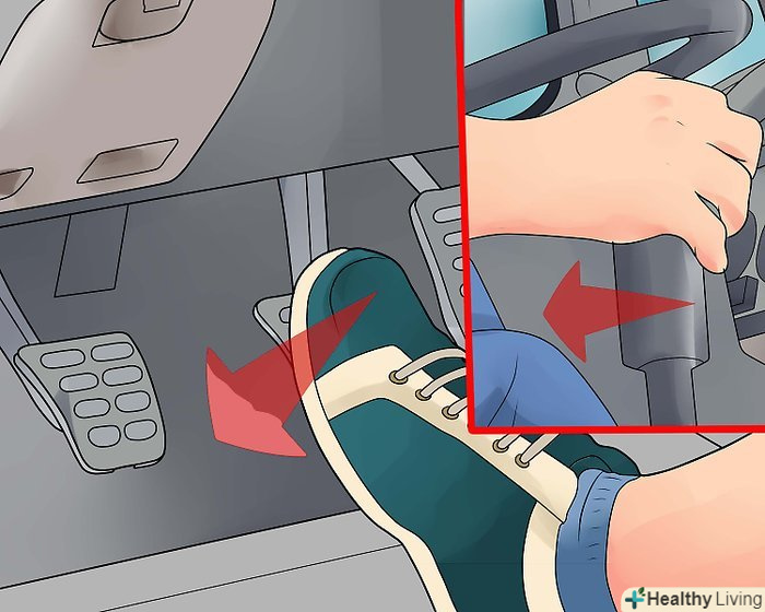 Натисніть педаль зчеплення, яка розташована першою зліва.