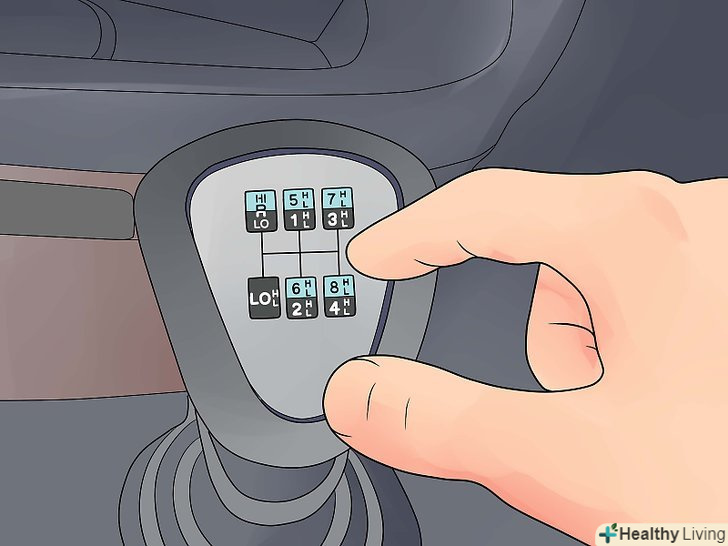 Вивчіть схему перемикання передач.це можна зробити, дивлячись на трансмісію. Для більшості передач є діаграма, яка відображена на схемі. Низькі передачі, як правило, відрізняються від високих за кольором, а задня позначена буквою «R».- Зверніть увагу: скільки передач доступно. Звичайна Трансмісія 9-швидкісна, в якій дев'ять передніх передач і одна задня.