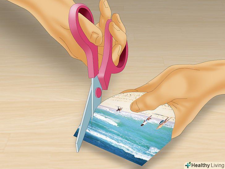 - Обріжте фотографії по вмісту. Якщо на фотографії присутні зайві деталі, які не вписуються в тему вашого пам'ятного альбому, можна спробувати їх відрізати. Наприклад, від фотографії вашого друга на пляжі можна відрізати незнайомців.
