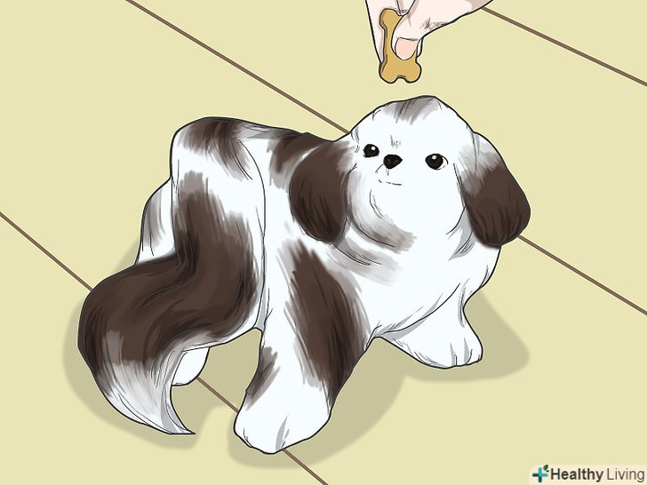 Здивуйте вихованця, щоб він подивився в вашу сторону. звичайно ж, не можна лякати тварину, але що-небудь нове і дивовижне може змусити його подивитися в вашу сторону. Наприклад, можна залучити помічника, який буде періодично виглядати з-за вашої спини, або ж взяти пищить іграшку, яка буде залучати вихованця своїми звуками. [16]- Також можна використовувати особливі звуки, наприклад, клацати мовою, постукувати пальцями, дряпати нігтями якусь поверхню або свистіти.