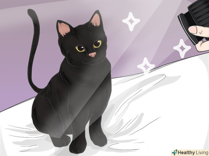 Дайте тварині звикнути до роботи спалаху і звуку спуску затвора фотокамери. часом спалах допомагає змусити тварину завмерти на секунду, що корисно в тому випадку, коли вам необхідно отримати нерухомий кадр. Тим не менш, і звук затвора фотокамери, і спалах можуть відвернути вихованця до такої міри, що кадри будуть зіпсовані. Тому вам необхідно зробити кілька попередніх знімків, щоб тварина звикла до особливостей роботи фотоапарата. [2]- Спробуйте пару раз сфотографувати стелю, щоб тварина послухало затвор фотокамери і побачило спалах.