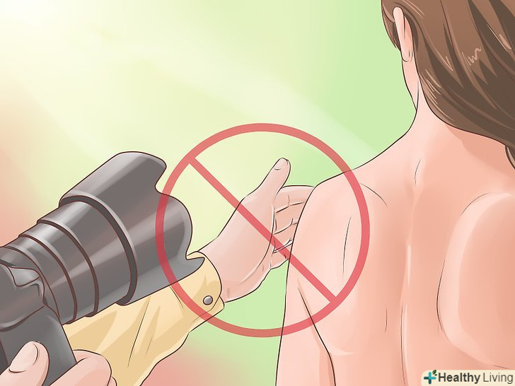 Намагайтеся не торкатися до дівчини. будучи фотографом, ви повинні усвідомлювати свої задуми і вміти давати зрозумілі вказівки, щоб модель могла їх втілити. Це не означає, що вам можна поводитися з моделлю як з неживим предметом. Чітко формулюйте свої інструкції щодо того, як і що зробити, а не намагайтеся самостійно надати моделі потрібну позу. Навіть якщо у ваших намірах немає нічого поганого, будь-які дотики до дівчини, коли та повністю оголена, можна неправильно витлумачити. [13]- Візьміть собі за правило тримати руки подалі від моделі, якщо тільки вона сама не попросить вас допомогти їй прийняти або відтворити певну позу.