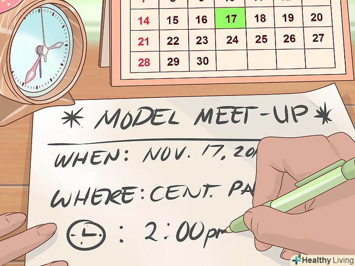Призначте час і місце попередньої зустрічі. призначте попередню зустріч з моделлю, щоб обговорити з нею деталі фотозйомок. Запросіть її пообідати, випити кави або відвідати вашу студію, щоб провести бесіду в доброзичливій обстановці. Постарайтеся розтопити лід між вами до того, як ви приступите безпосередньо до роботи. Коли прийде час расчехлять фотоапарат, ви вже будете досить знайомі і зможете спілкуватися один з одним більш комфортно.- Обов'язково опишіть в загальних рисах свою концепцію, щоб модель мала уявлення про те, чого очікувати. Не бійтеся розпитати модель про її ставлення до того, що ви задумали.