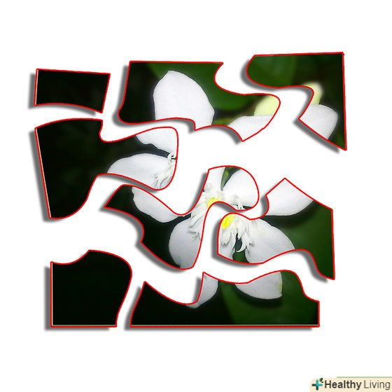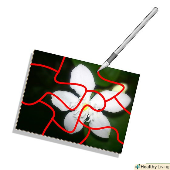 Розріжте фото за допомогою канцелярського ножа. можна намалювати зі зворотного боку лінії фігур, за якими буде простіше вирізати. Придумайте форму фігур самі або розріжте на стандартні шматочки пазла.