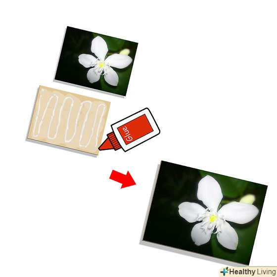 Приклейте фотографію до картону. Переконайтеся, що вони добре підходять за розміром один до одного. Підрівняйте краю, якщо там стирчить щось зайве.
