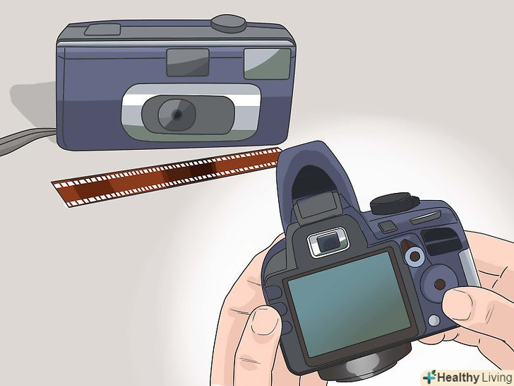 Знімайте на плівку. Якщо ви вже робите це, почніть знімати і на цифрову камеру. Фотографу варто вміти поводитися як з плівкою, так і з цифровою камерою. І у плівкових, і у цифрових камер є свої плюси і мінуси. Ці камери дадуть вам абсолютно особливі навички. Шкідливі звички, які з'являються через роботу з цифровою камерою, компенсуються корисними звичками роботи з плівкою і навпаки.- Цифрові камери дозволяють відразу ж оцінити, що ви робите правильно, а що неправильно. Вони також знижують ціну помилки. Це дуже корисно початківцям фотографам. Однак через низьку ціну помилки фотограф може почати знімати все підряд в надії, що якийсь з кадрів вийде вдалим.