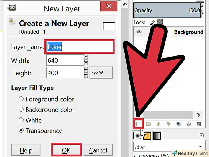 Додайте новий шар до зображення. ви можете зробити це, натиснувши маленький значок «новий шар» у вікні шарів або вибравши «новий шар» в меню «Шари» на панелі завдань. Потім з'явиться діалогове вікно, яке попросить вас вказати ім'я шару, його розмір і колір. Зверніть увагу, що Ви зможете змінити всі ці параметри пізніше. Натисніть кнопку "OK", щоб додати новий шар.