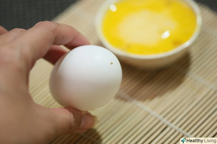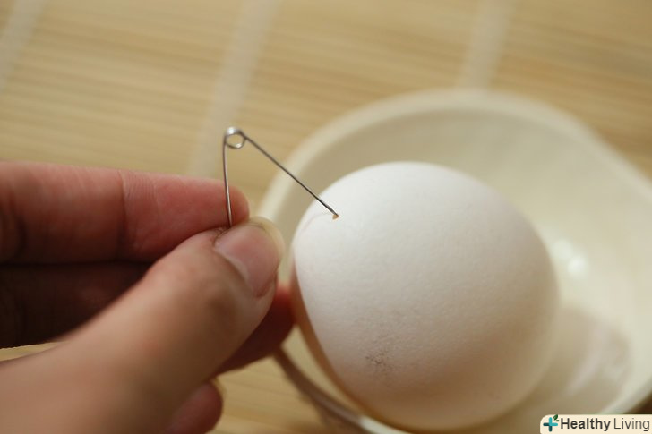 - Проткніть верхівку яйця шпилькою. Обережно постукуйте шпилькою по верхівці до тих пір, поки не проб'єте шкаралупу, при цьому вона не повинна потріскатися навколо отвору. Потім витягніть шпильку.