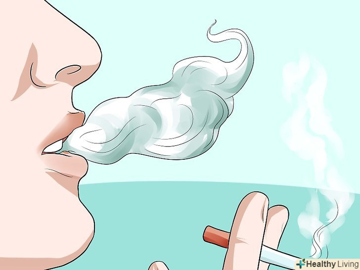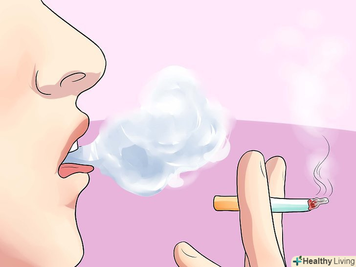 Зробіть велику затяжку. як і в інших випадках, намагайтеся утримувати дим у роті. Цей трюк найкраще виходить з білим густим димом.