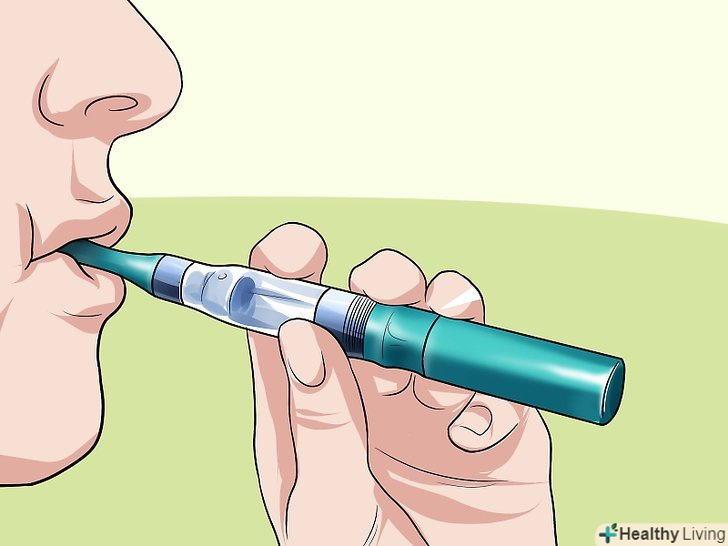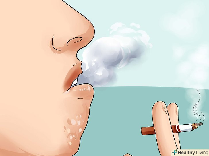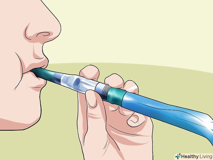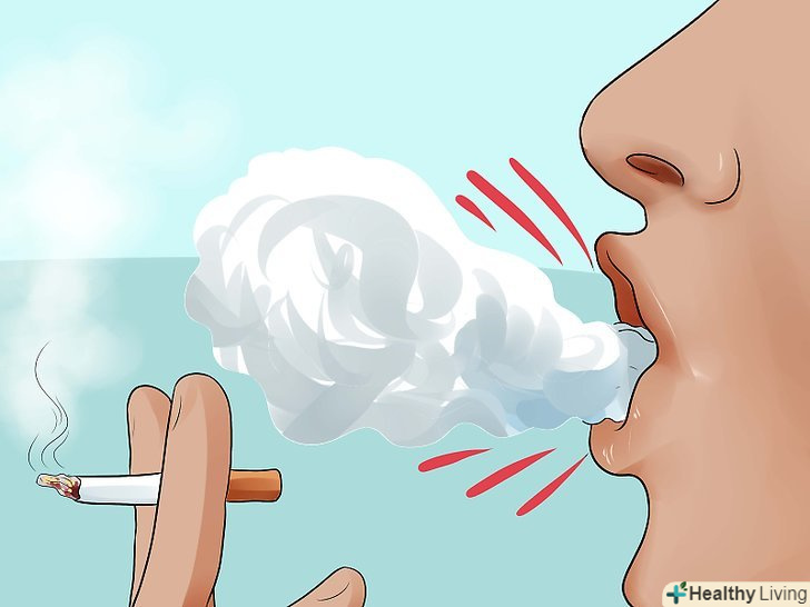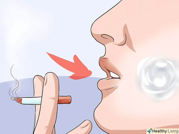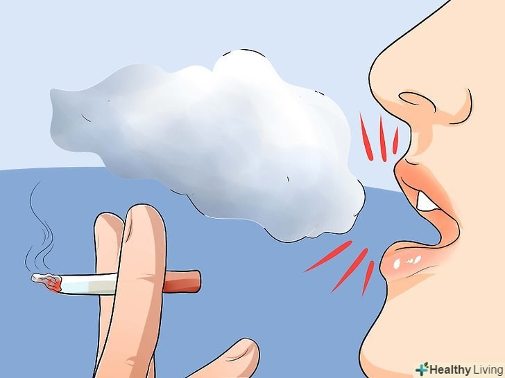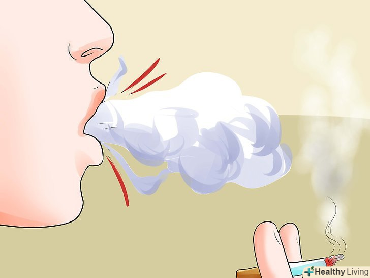 Потренуйтеся утримувати дим у роті. при глибокому вдиху дим розсіюється в легенях, стаючи в результаті менш густим. Щоб уникнути цього робіть короткі неглибокі вдихи, злегка роздуваючи щоки і утримуючи дим у роті. Замість однієї глибокої затяжки робіть 3-4 неглибоких вдиху, намагаючись утримувати дим сигарети або кальяну в роті. [2]- Ви відчуєте, як дим проникає в ваше горло – це сильніше відчувається саме після декількох швидких вдихів.