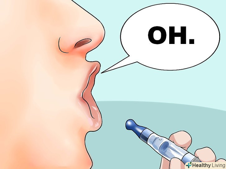 - Використовуйте свою мову, як би "вилуговуючи" їм невеликі порції диму. Загинаючи кінчик язика до верхнього неба, різко опускайте його одночасно з кожним коротким видихом.